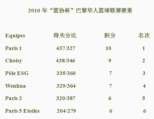 Résultats du Championnat de Basket-Ball Chinois de Paris "Coupe FCBA" 2010 15 déc. 2010 Actualités FCBA, Résultats des matchs